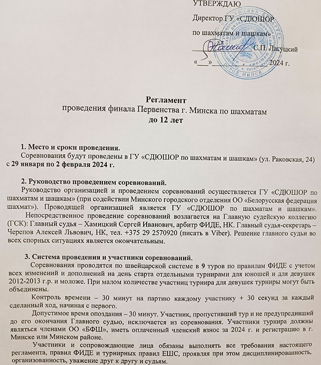 Заявки на участников подаются в ГСК участвующими организациями на бумажном носителе или на электронную почту minskchess@outlook.com до 13.00 29 января.