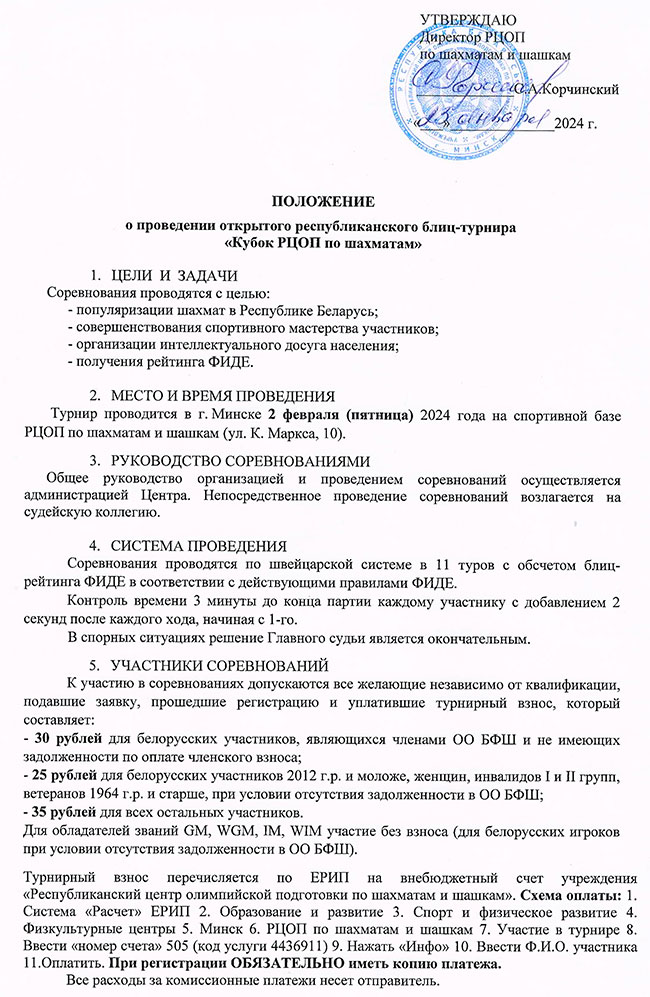 Предварительная регистрация осуществляется до 15.00 1 февраля 2024 года путем отправки заявки с приложением копии квитанции об оплате турнирного взноса на адрес электронной почты javaminsk@mail.ru Якушев Василий Александрович (тел. +375 29 6908789). Предварительно зарегистрировавшиеся и уплатившие турнирный взнос игроки гарантируют себе участие в турнире.