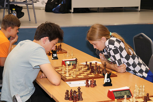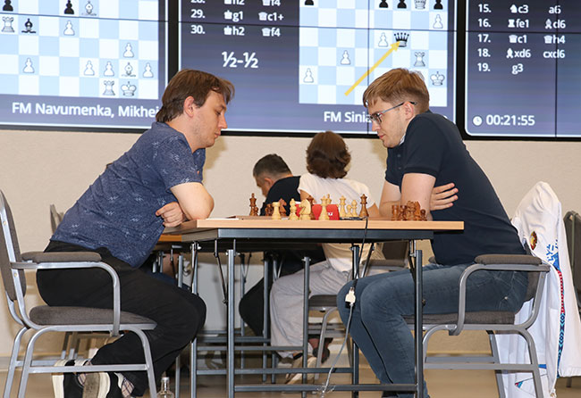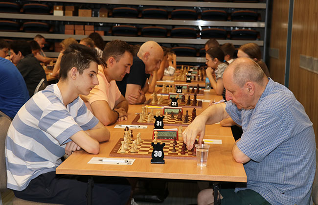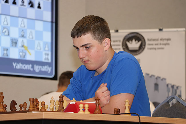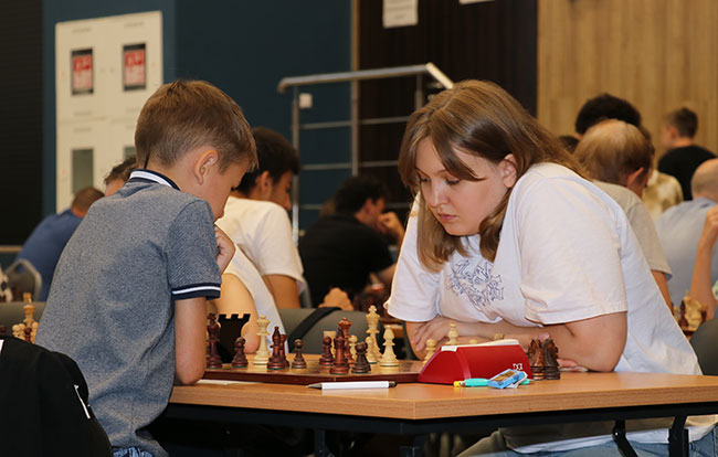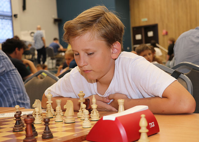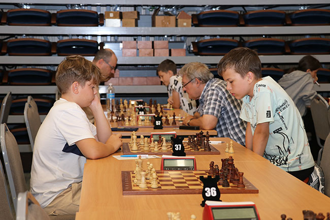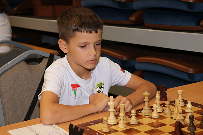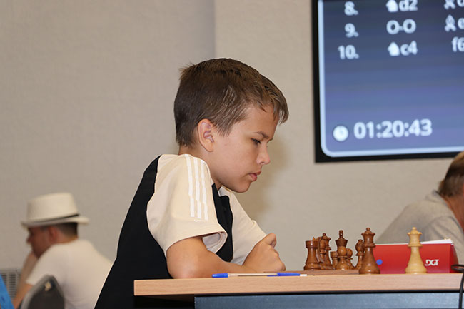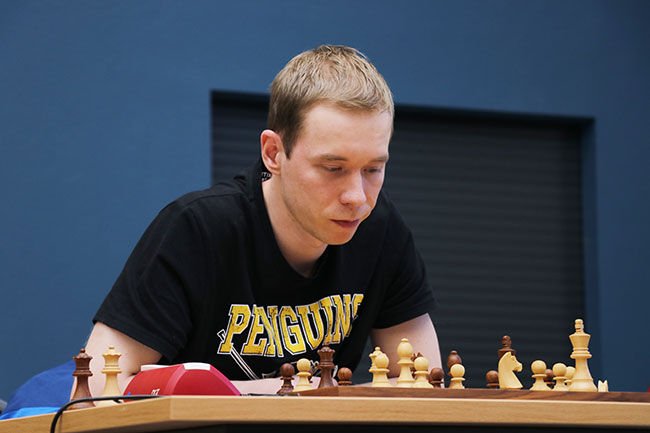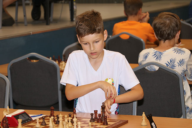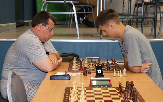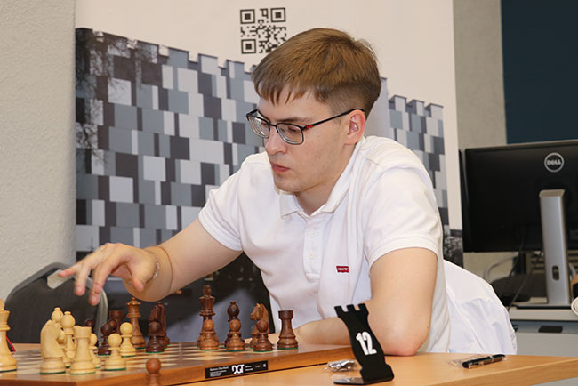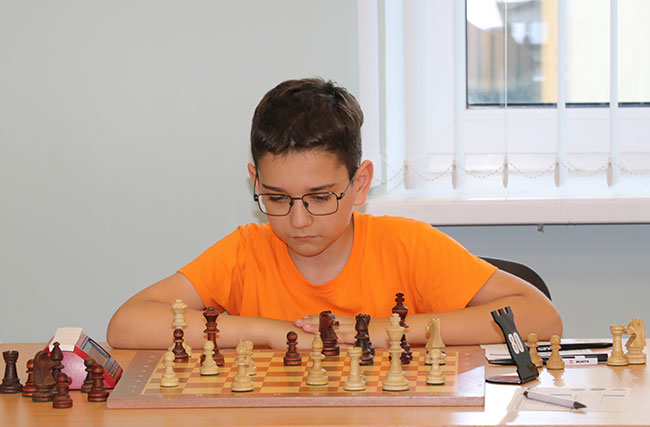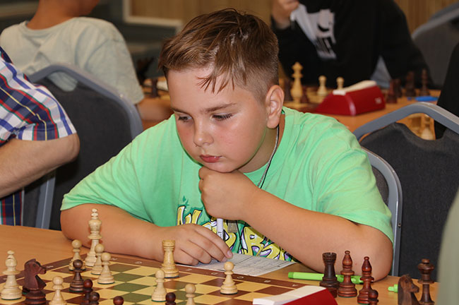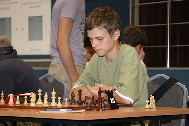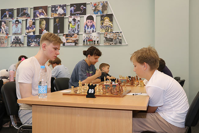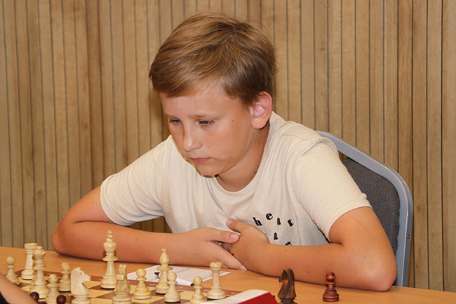 После 7 тура по 6 очков набрали сразу 3 шахматиста. Максим Самусенко (на фото), Панкратов Павел и Артем Стрибук. Последних свел жребий в 8 туре, где они так быстро расписали ничью, что их даже не успели сфотографировать за доской.
