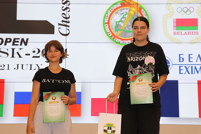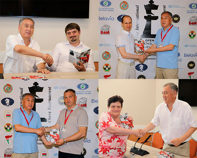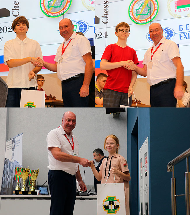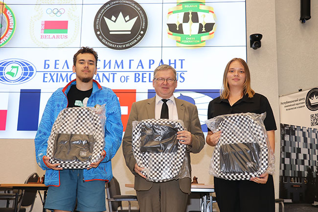 Призы от ОО "Белорусская федерация шахмат" получили белорусские юниоры Ксения Норман и Артем Стрибук, которые совсем недавно очень достойно выступили на чемпионате мира, а также руководитель белорусской делегации Игорь Росихин.