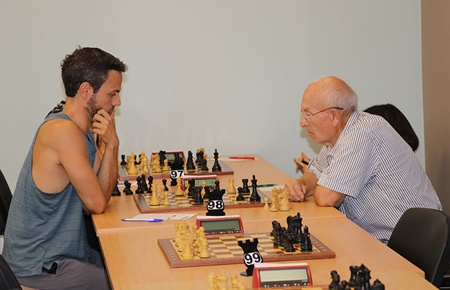Если продолжить развивать тему магии Международного дня шахмат, то Вы можете наблюдать очень необычную партию. На 36-ой доске играют Раиса Эйдельсон и Денис Кот, которые родились в один день с разницей ровно в 50 лет!