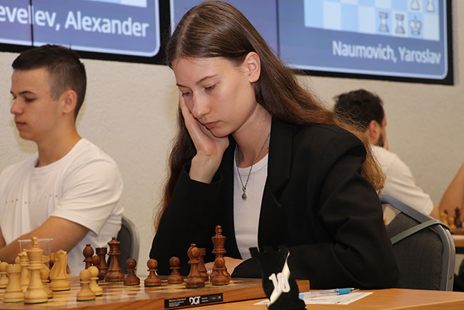 Нешуточная борьба разворачивается и за первый женский приз. По 5 очков после 7 туров имеют сразу 6 прекрасных дам: россиянка Алена Гармаш (на фото), Вероника Абрамкина, Варвара Полякова, Ксения Норман, Виктория Дорошева, Александра Тарасенко.