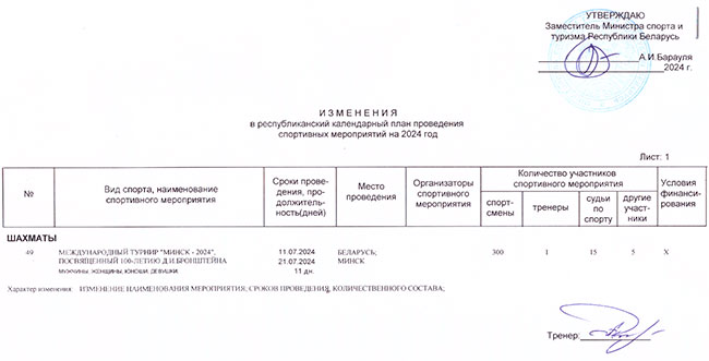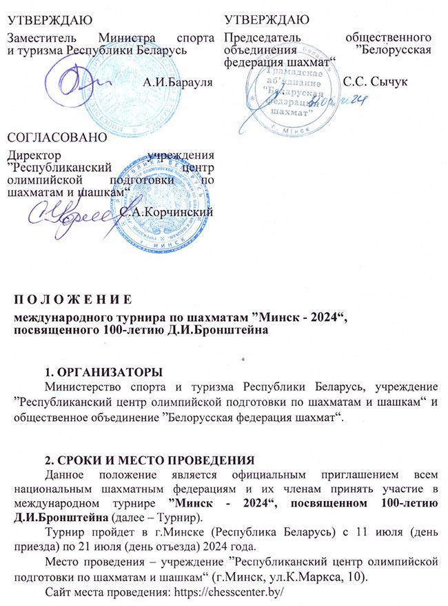 международного турнира по шахматам ”Минск - 2024“, посвященного 100-летию Д.И.Бронштейна