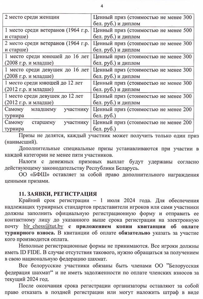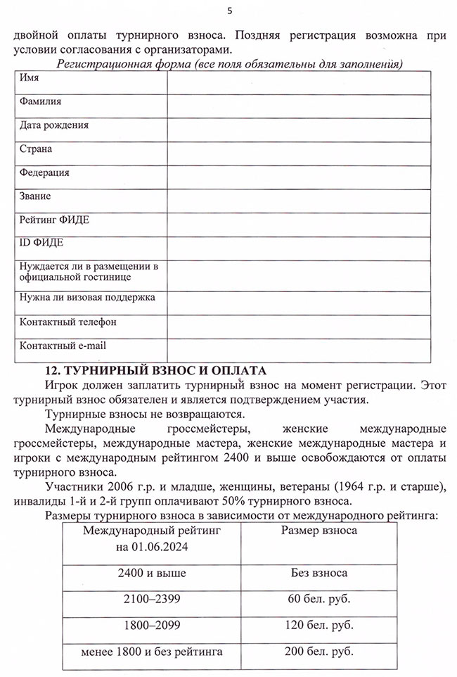 Все белорусские участники обязаны быть членами ОО ”Белорусская федерация шахмат“ и не иметь задолженности по оплате членских взносов за текущий 2024 год.