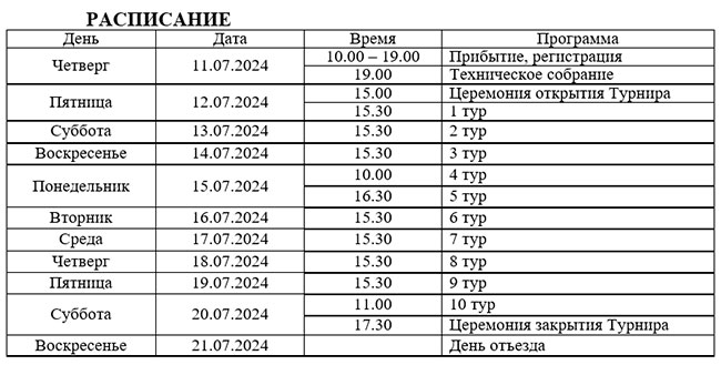 11 - 21 июля 2024 года, г. Минск, РЦОП по шахматам и шашкам.