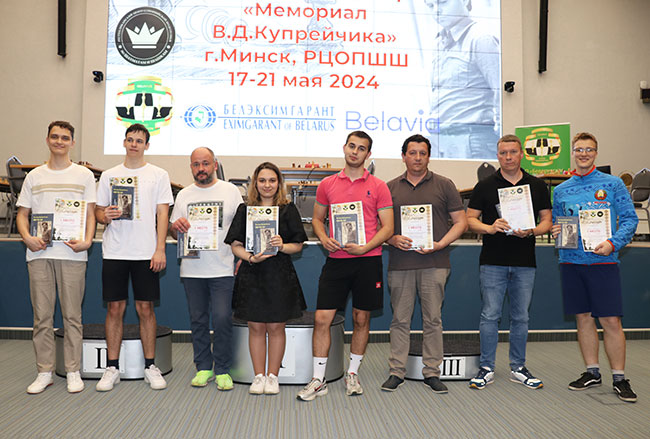 Абсолютно все команды получили от ОО "БФШ" книгу "ИДУ НА ВЫ", в которой о жизни и творчестве гроссмейстера Виктора Купрейчика рассказывают в этой книге его родные, друзья и коллеги. Среди них - чемпионы мира Анатолий Карпов и Гарри Каспаров, гроссмейстеры Юрий Балашов, Геннадий Сосонко, Борис Гельфанд, Илья Смирин, Владимир Тукмаков, Евгений Свешников.