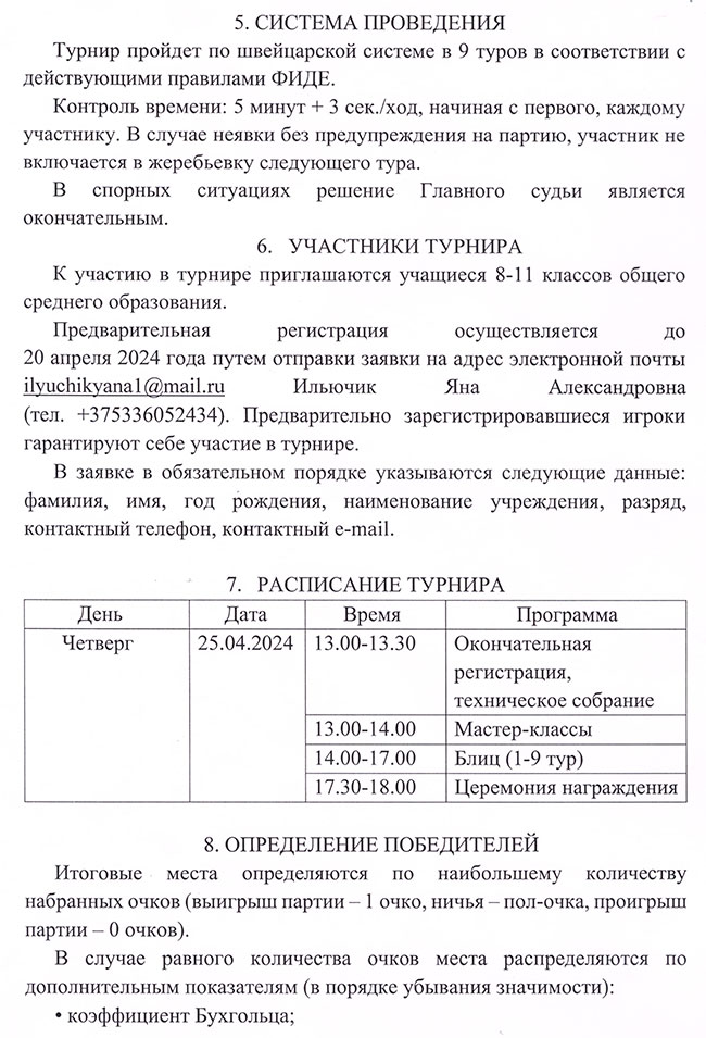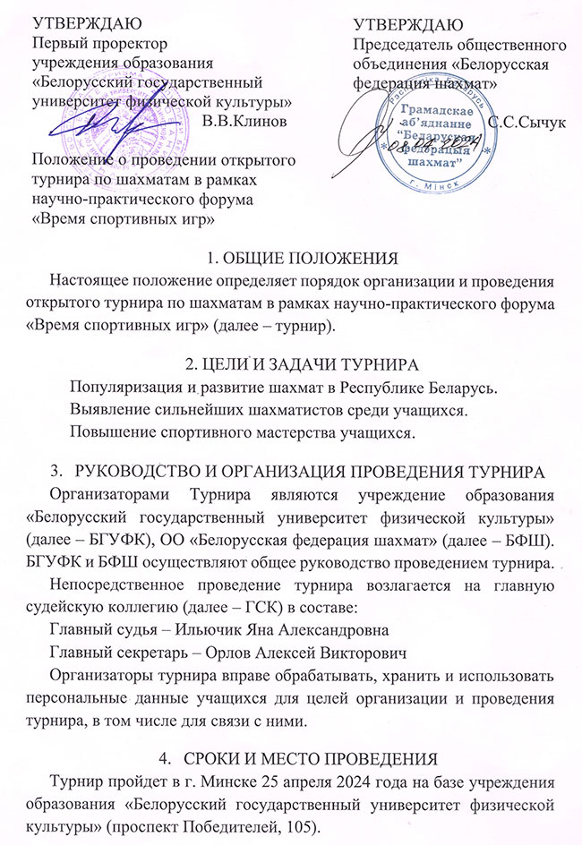 25 апреля в рамках научно-практического форума «Время спортивных игр» на базе БГУФК завершился открытый шахматный турнир для учащихся 8-11 классов общего среднего образования.