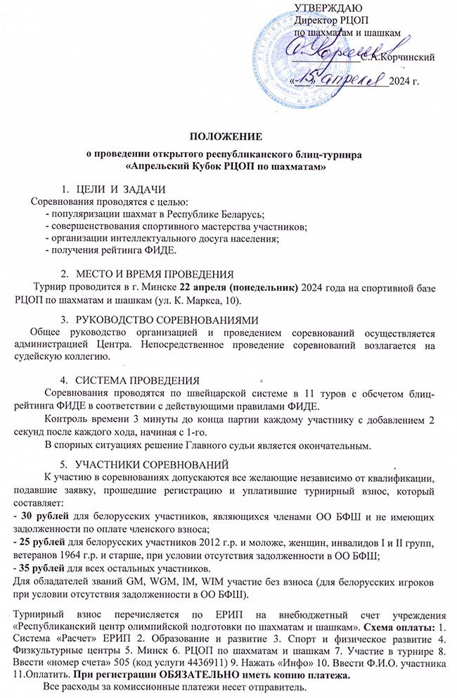 Положение о республиканских соревнованиях по шахматам на 2025 год
