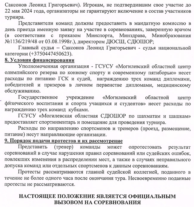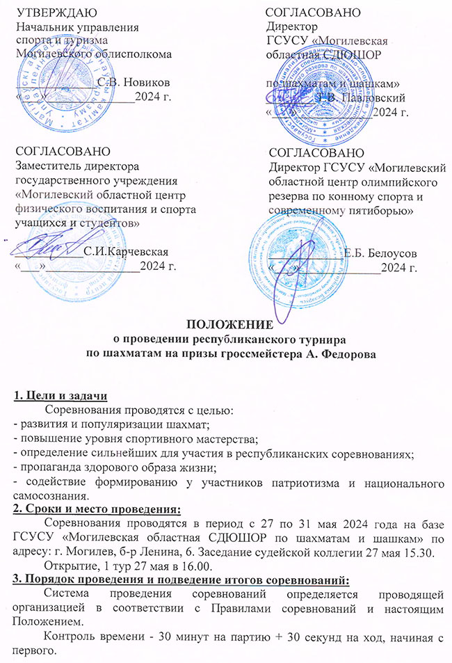 1. Турнир проводится в соответствии с республиканским календарным планом соревнований по шахматам на 2024 год.