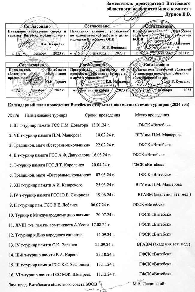 о XVIII Витебском открытом лично-командном шахматном турнире