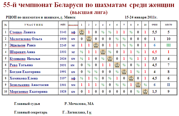 женский мастер ФИДЕ | Ланита СТЕЦКО | Минск | 2142 | 5,13 из 9 |