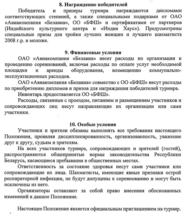 Лучшим среди юношей 2008 г.р. и моложе стал Дамир Булгак. Все призеры получили памятные подарки и сувениры от компании "Белавиа" и Белорусской федерации шахмат.