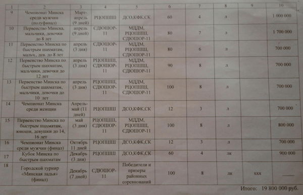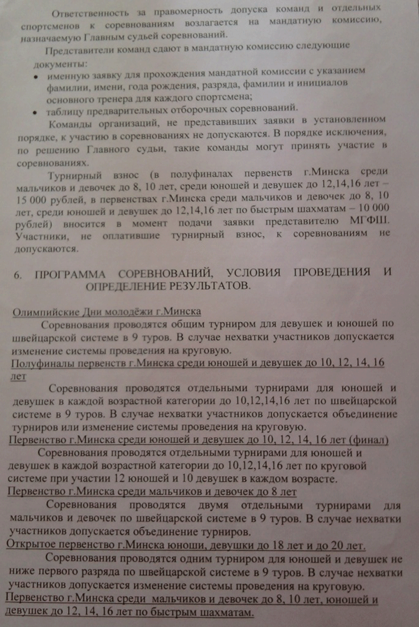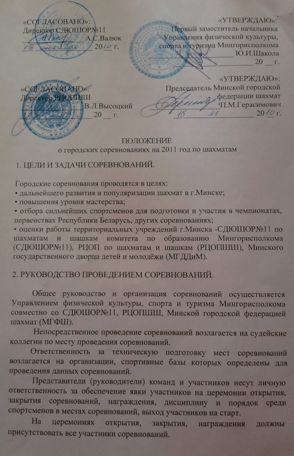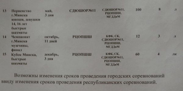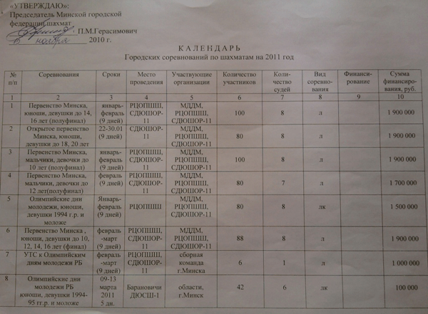 Календарь и положения минских соревнований по шахматам на 2011 год