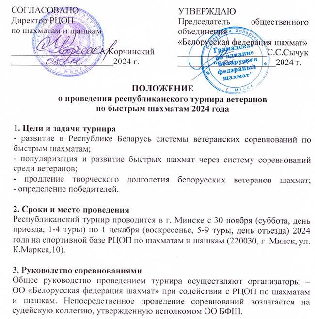 Предварительные заявки спортсмены, которым предоставлены специальные условия по приему, необходимо направить на электронную почту blr_chess@tut.by до 25 ноября 2024 года, остальные участники - до 28 ноября 2024 г.