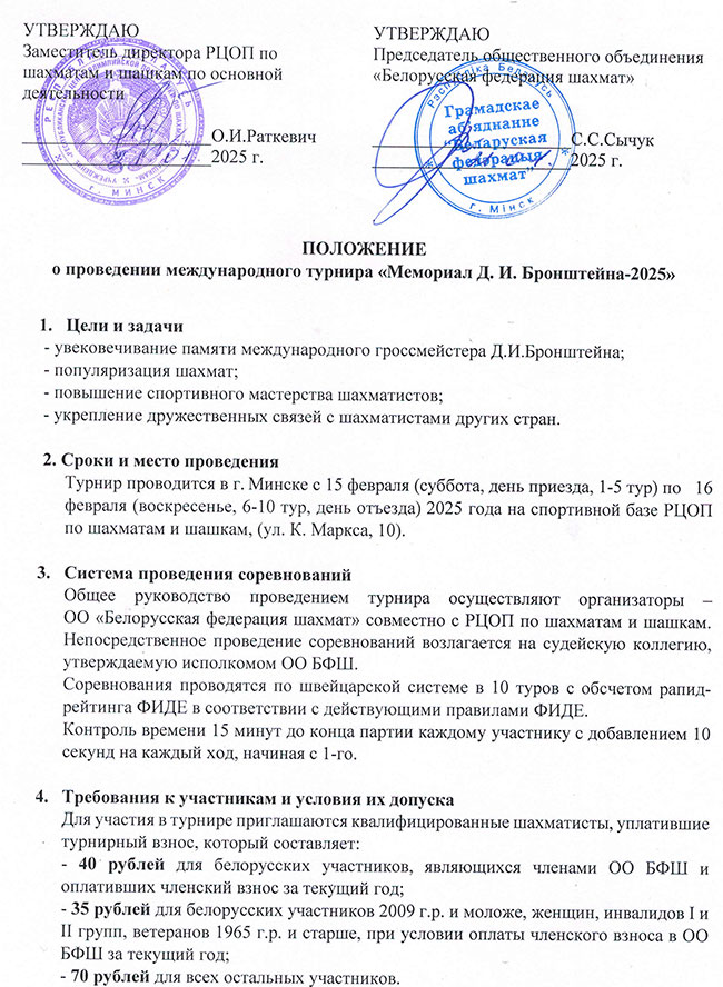 Для обладателей званий GM, WGM, IM, WIM участие без взноса (для белорусских игроков при условии оплаты членского взноса в ОО БФШ за текущий год).