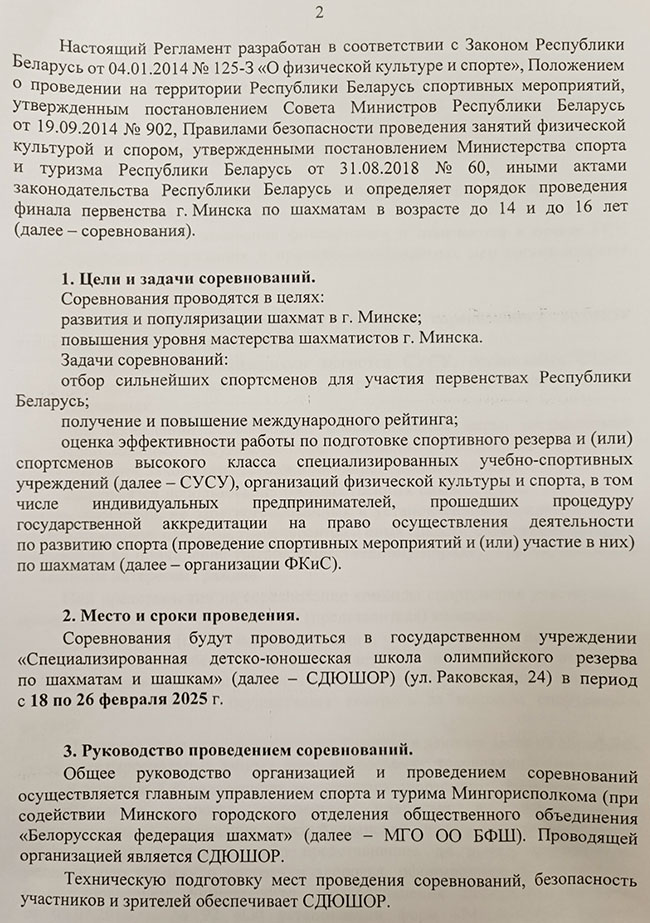 Положение о республиканских соревнованиях по шахматам на 2025 год