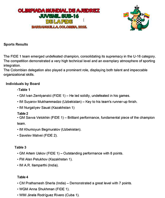 22 августа в Колумбии завершилась юношеская Олимпиада ФИДЕ (до 16 лет), где достойно выступила белорусская команда. Еще раз вспомним события шахматного праздника глазами организаторов.