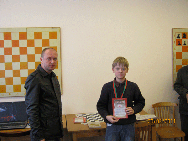 Петрушкевич Максим — 1-ое место на 2-ой доске и главный судья соревнований — Гурбанов Андрей Геннадьевич