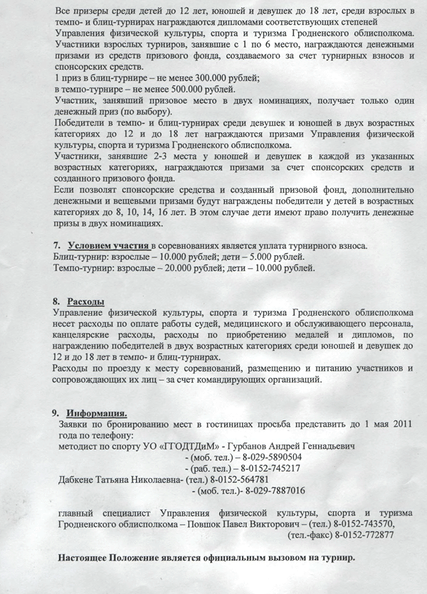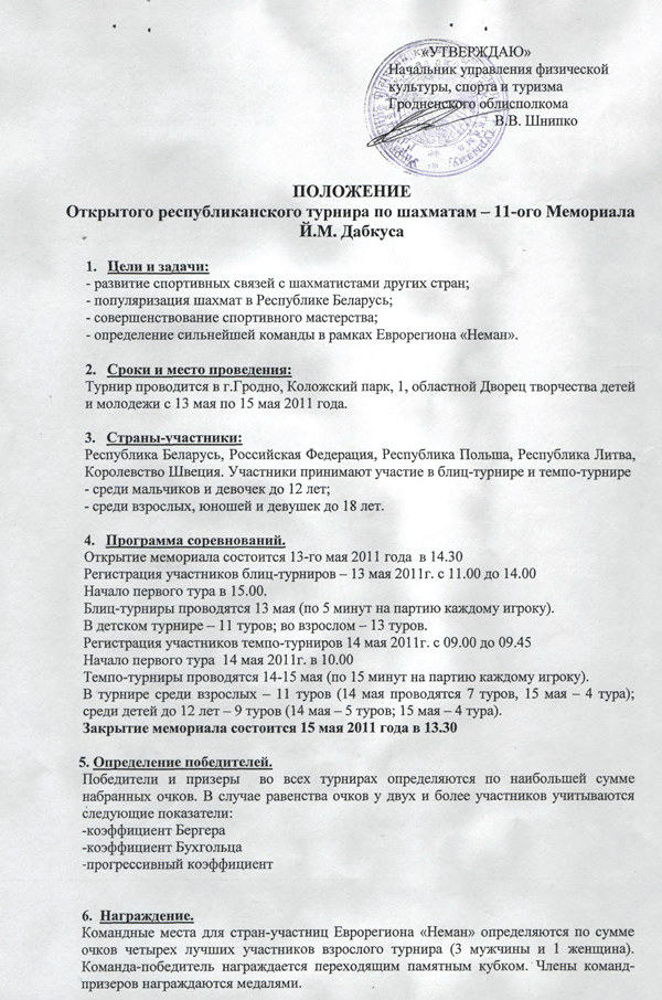 Мемориал Дабкуса 2011. Положение.
