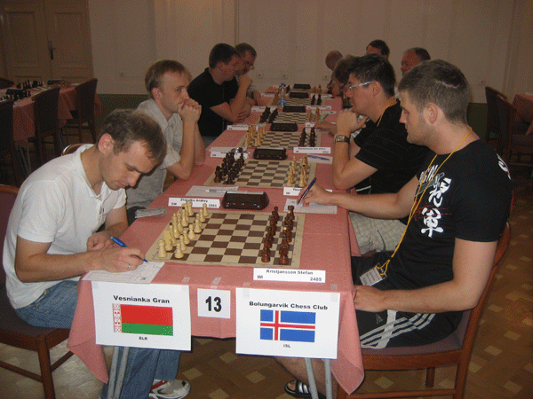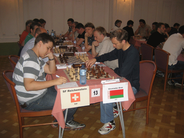 Представители Швейцарии (клуб “SF Reichenstein”) были разгромлены с уже знаковым для нас счетом 5,5:0,5. Финиш. “Веснянка-Гран” одержала 4 победы в 7 матчах, набрала 8 командных и 26,5 личных очков, что определило в итоге достойное 16 место из 62 участвовавших в Кубке клубов. Рассматривая командный итог через призму личных результатов, следует отметить, что на первых пяти досках (А.Жигалко — 5 очков; В.Тетерев — 5,5; Е.Подольченко — 4,5;Ю.Тихонов и Е.Мочалов — по 4) всем удалось повысить свой индивидуальный рейтинг. Откровенно слабо в этот раз выступил Кирилл Ступак. 3,5 из 7 на 6-йдоске — явно не его уровень. Причем два поражения из трех пришлись на два ключевых матча, проигранных командой с минимальным счетом.