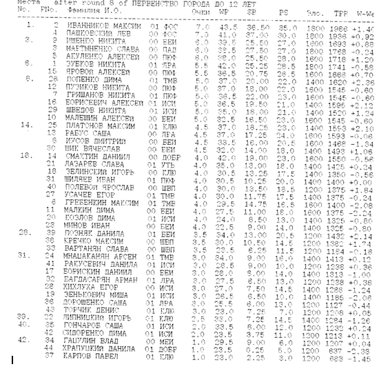 В турнире мальчиков до 10 лет уверенную победу с 7,5 очками одержал Сурин Георгий. Второе место с 7 очками занял Парамонов Юрий, третье — Ермаков Слава (6 очков).