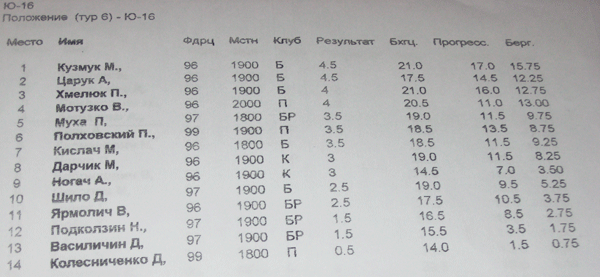1.Шепетюк С.(Кобрин) 2. Кирилюк И. (Кобрин) 3. Альтшулер И. (Брест) 4. Жданович Ю. (Пинск) 5. Качановский И. (Пинск).
