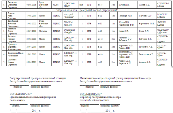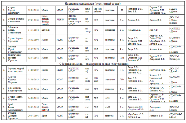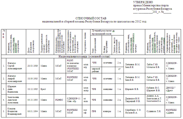 , а также списочный состав национальной и сборной команд Республики Беларусь по шахматам на 2012 год.