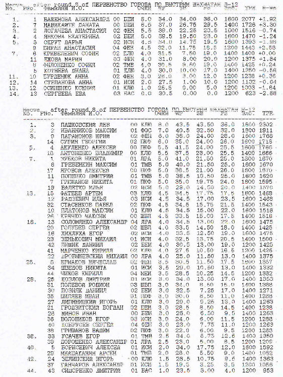 У мальчиков первое место у Пашковского Льва — 8 очков.Второе место у Иванникова Максима с 7 очкам. А вот третье место определилось по коэффициенту Бухгольца и досталось Парамонову Юрию, набравшему 6 очков.