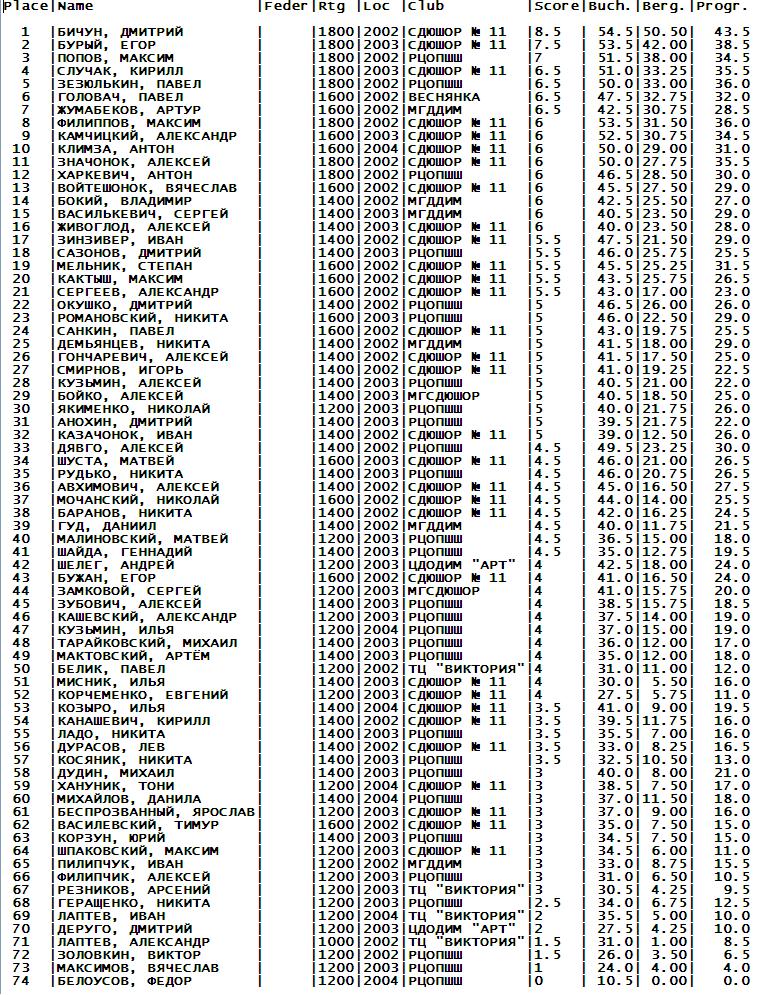 7. Определение мест. Места участников определяются по наибольшему количеству набранных очков. В случае равенства очков у двух и более участников порядок определяется по дополнительным коэффициентам: