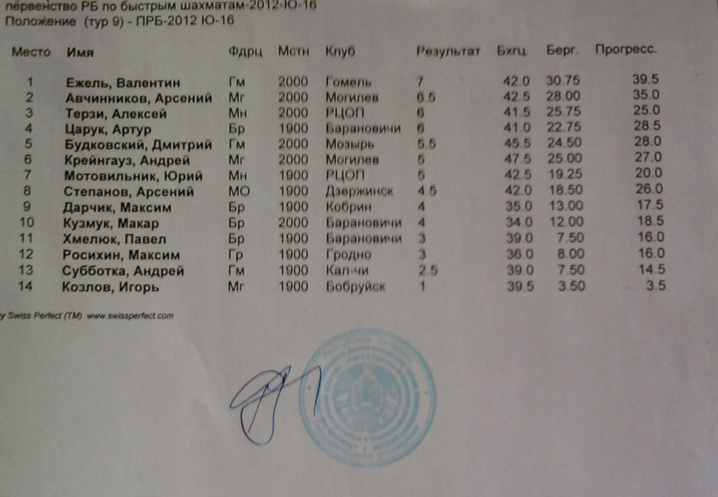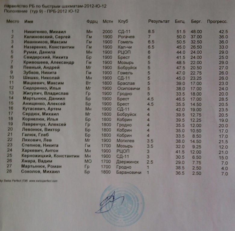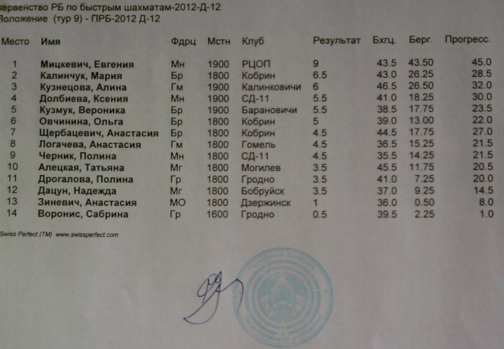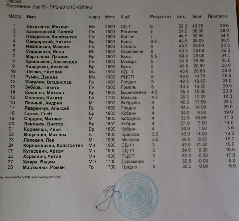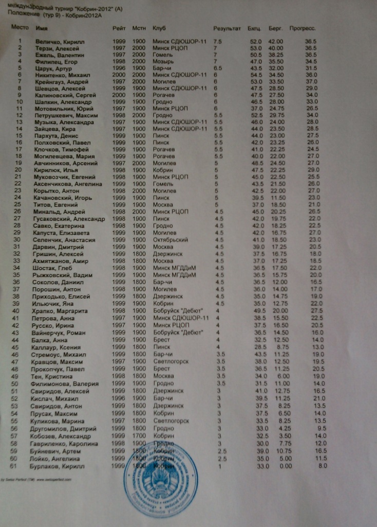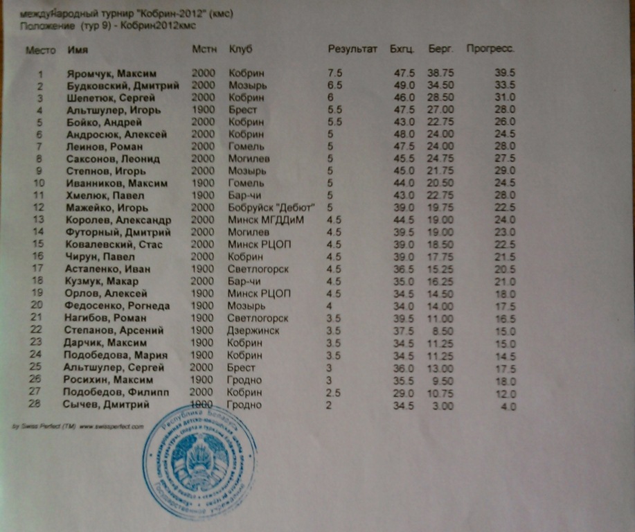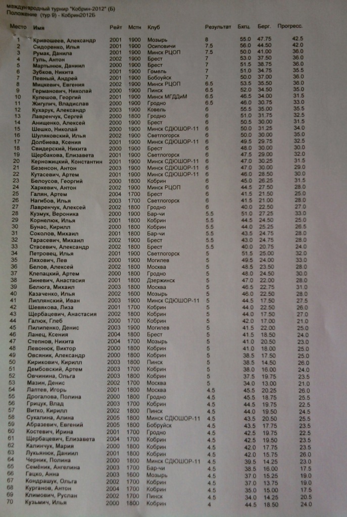 В городе Кобрин закончились: первенство Беларуси по быстрым шахматам и международный юношеский турнир "Кобрин-2012".