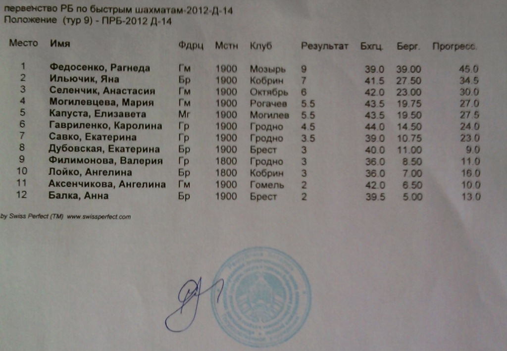Первенство Беларуси по быстрым шахматам и международный юношеский турнир «Кобрин-2012»