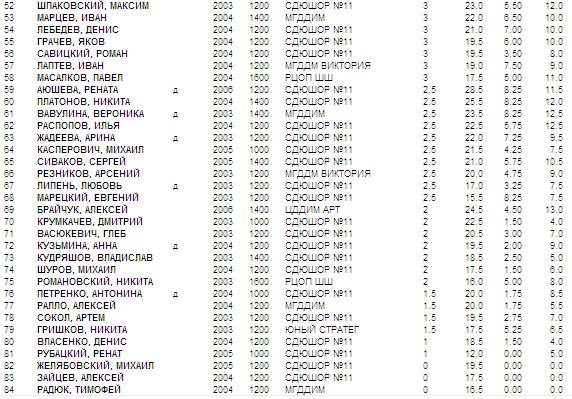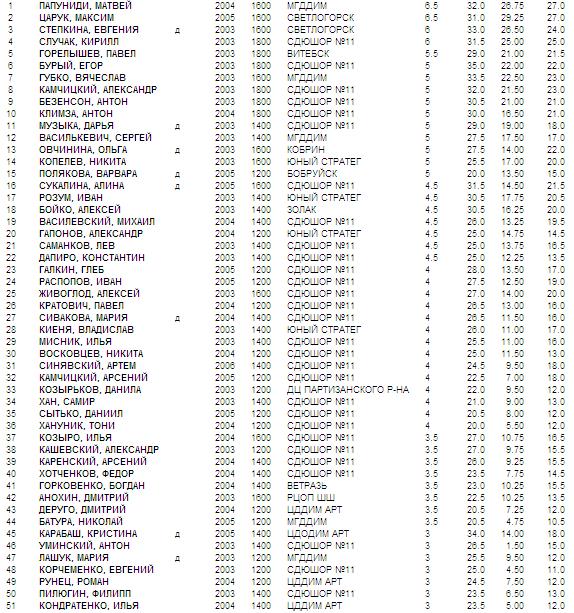 50. ГАПОНОВ, АЛЕКСАНДР 2004 1200 ЮНЫЙ СТРАТЕГ