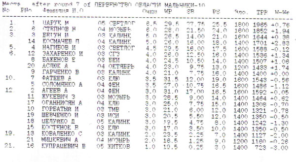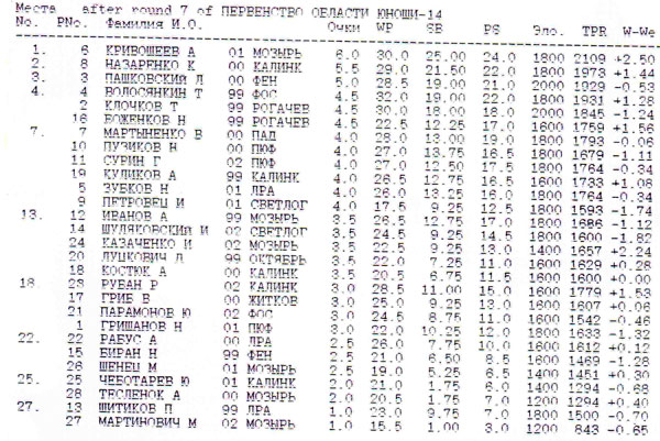 Третье место определилось по коэффициенту Бухгольца и досталось Бегуну Ивану из Калинкович с 5 очками.
