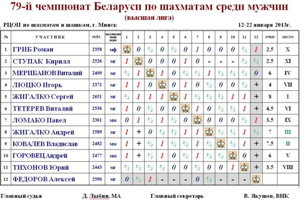 С 11 по 22 января в минском РЦОПе проходил 79-й Чемпионат Беларуси по шахматам среди мужчин.