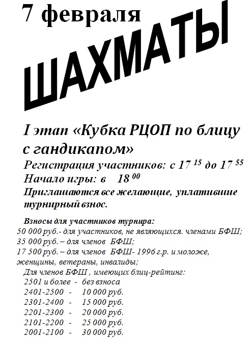 7 февраля в столичном РЦОПе пройдет I этап «Кубка РЦОП по блицу с гандикапом».