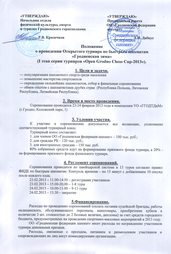 23-24 февраля в г.Гродно состоится открытый турнир по быстрым шахматам "Гродненская зима" (I этап серии турниров "Open Grodno Chess Cup-2013").