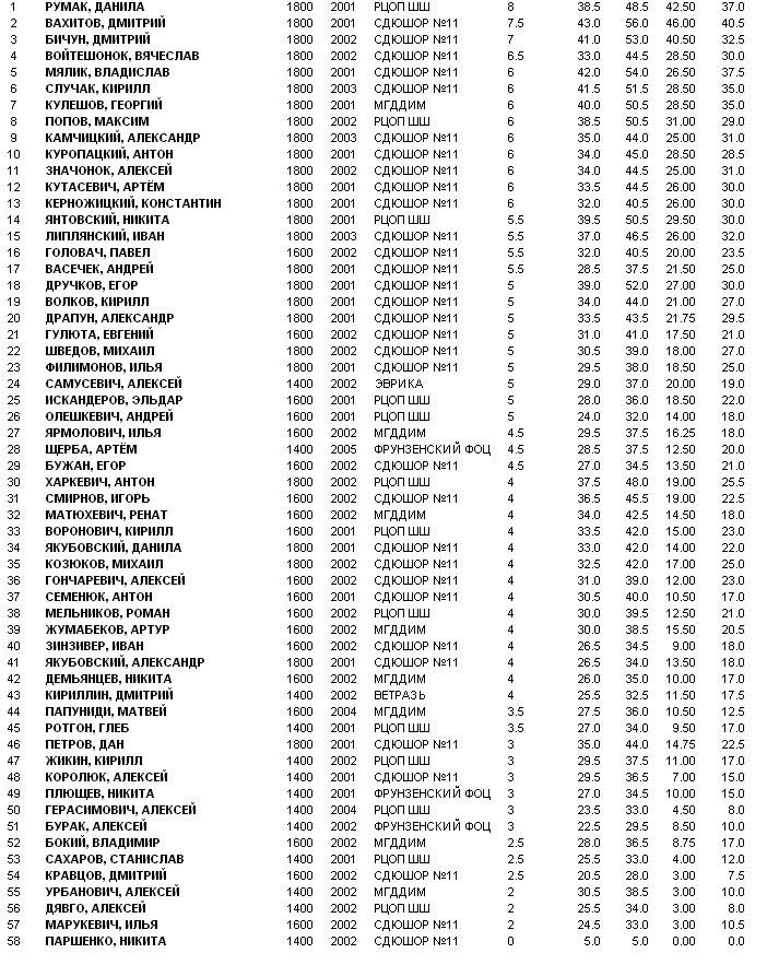 Первенство г. Минска по шахматам среди юношей и девушек до 12 лет (2001-02 г.р.)