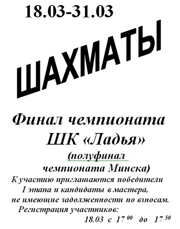 с 18 по 31 марта в столичном РЦОПе пройдет Финал чемпионата ШК «Ладья».