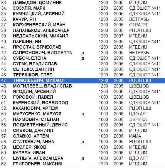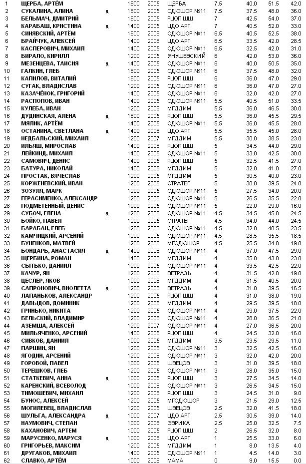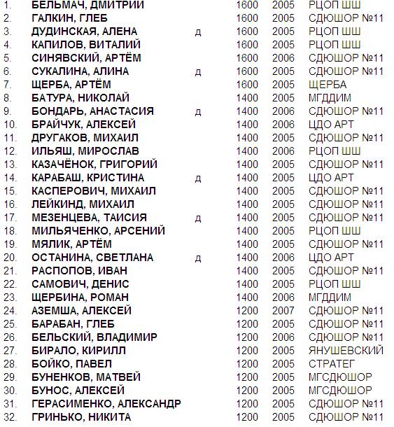 Первенство г. Минска по шахматам среди мальчиков и девочек до 8 лет (2005 г.р. и моложе).