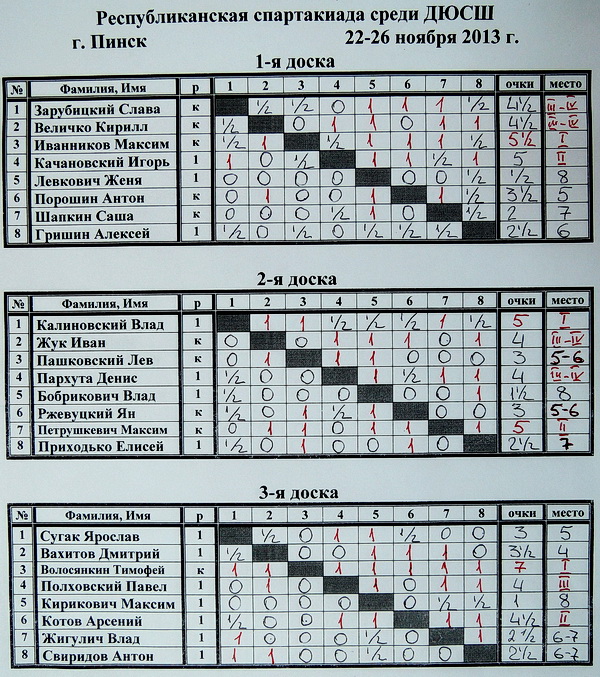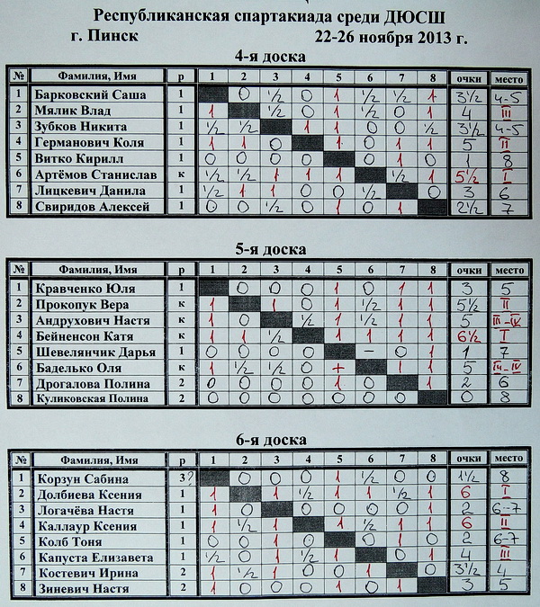Итоговые таблицы по доскам: