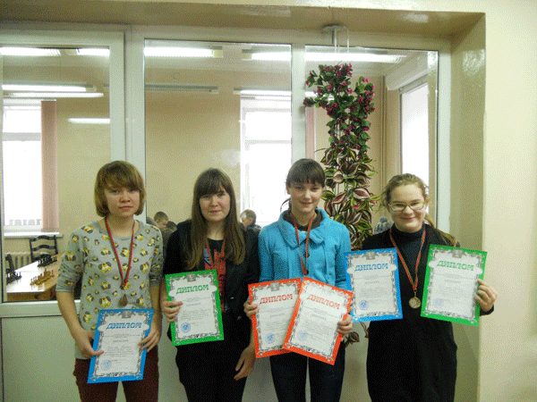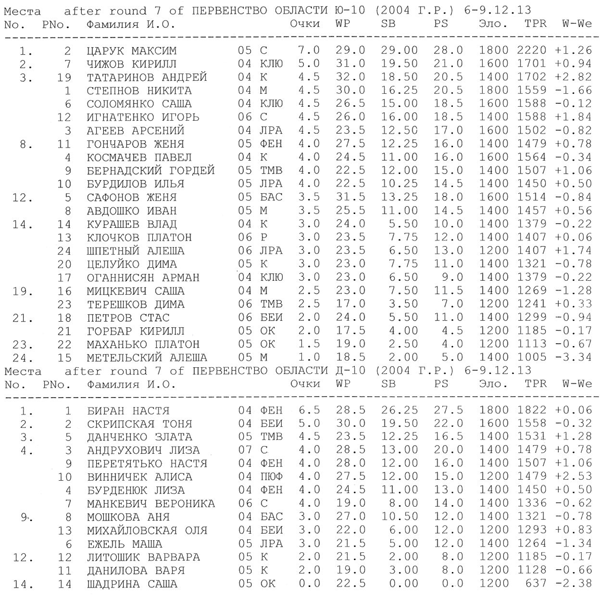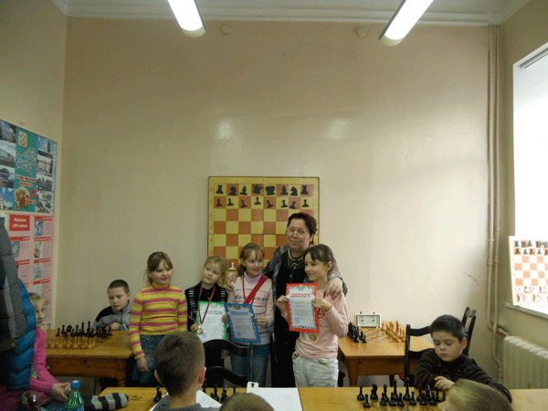 У девочек до 10 лет все призовые места достались представительницам областного центра. Первое место с 6,5 очками у Биран Насти, второе место с 5 очками заняла Скрипская Тоня и третье место с 4,5 очками у Данченко Златы.