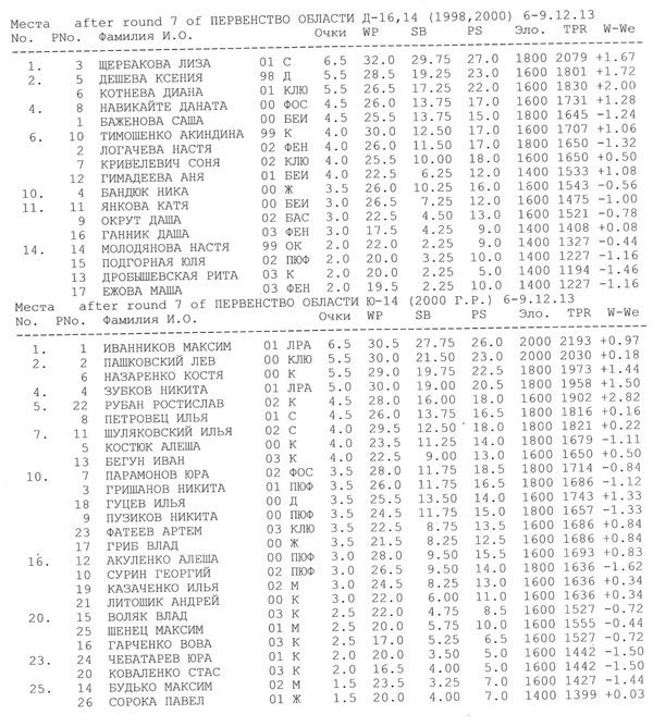 У юношей до 14 лет с 6,5 очками первое место — у Иванникова Максима из Гомеля. Второе место с 5,5 очками среди юношей до 14 по дополнительным коэффициентам у гомельчанина Пашковского Льва. Третий с 5,5 очками среди юношей до 14 лет — Назаренко Константин из Калинкович.