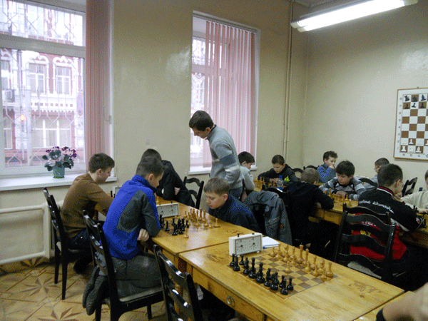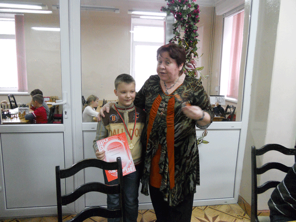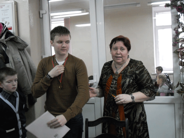 У юношей до 14 лет первое место с 7очками занял Калиновский Сергей из Рогачева. Второе-у Иванникова Максима (6,5) из Гомеля. Третье с 6,0 очками у Назаренко Константина из Калинкович.