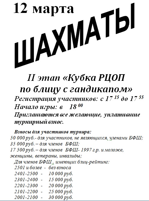 12 марта в столичном РЦОПе пройдет II этап «Кубка РЦОП по блицу с гандикапом»