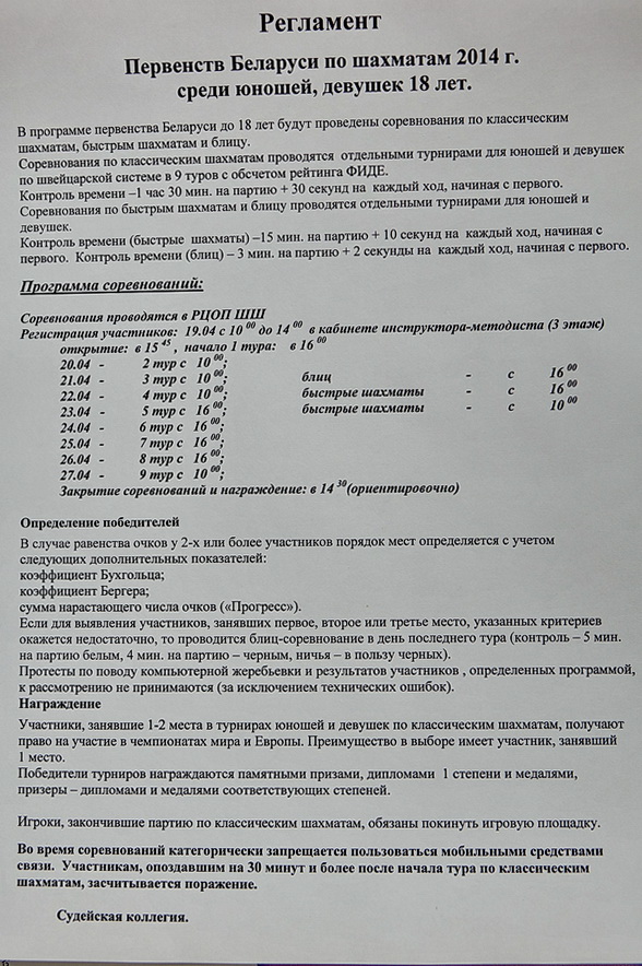Первенство Беларуси по классическим шахматам, быстрым и блицу среди юношей и девушек до 18 лет.