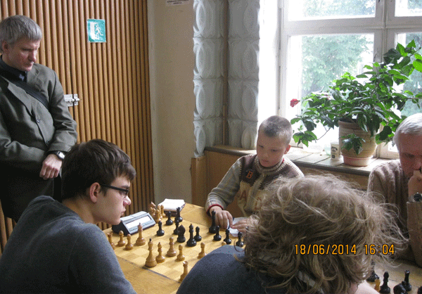 А вот Госпожа Удача на сей раз обратила свой благосклонный взор на 9-летнего мальчугана, чемпиона Беларуси среди мальчиков до 10 лет Максима Царука. Что-то ей понравилось в его горящих глазенках: может, то с каким аппетитом он садится за партию — словно это вкуснейшее в мире мороженое. По-матерински взяла его за маленькую ручку и повела по ступенькам, временно ослепляя соперников. Так, с двумя лишними пешками Геннадий Шаходанов зевает ладью, затем уже на 18-ом ходу Сергей Тальма получает совсем беспросветную позицию. Кандидаты один за другим склоняют головы под напором разбушевавшегося малыша. Подперев рукой подбородок и сев на свою же ножку, Максим обводит любопытным взором обхватившего красное от напряжения лицо соперника, потом переводит взгляд на зал, всем своим видом демонстрируя полное непонимание того, что он находится в логове не раз битых матерых волков, готовых проглотить в любой момент высоко взлетевшего птенца. Все происходящее вызывает у него явно неподдельный интерес, а выражение лица напомнило мне пионера из советского кинофильма: «А что это вы здесь делаете, а?» Так ведет себя только тот, кого действительно фортуна поцеловала в обе щечки. Какая верная своим сегодняшним фаворитам, жестокая к их соперникам и все же, не надейтесь, очень изменчивая дама! После 6 туров у Максима было уже 5 очков в активе (проиграл первую партию Александру Кочееву). Даже не пришлось выигрывать по заказу в последних турах, поскольку мальчуган забрался так высоко, что при любом исходе нужное количество кандидатов было обеспечено. В 7 туре после 3 часов борьбы Максим выиграл качество и пешку (представьте себе!) у международного мастера Сергея Хамицкого. Кажется, что еще нужно для победы? Но класс есть класс. И, конечно же, знание психологии. Кто как не практикующий тренер знает, что почти любой ребенок крайне нетерпелив в реализации перевеса и в желании выиграть немедленно. Так и случилось. Велика цена ошибки. Это поражение словно надломило Максима, но норма КМС, как утешительный приз, осталась в кармане. Так вызывающе рано норму кандидата еще никто не выполнял. Недавно я удивлялась везению 10-летнего Вани Рунца, но, кажется, в скором будущем я буду писать о 7-летних кандидатах.