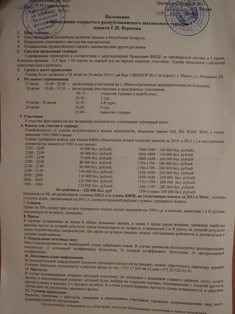 26 июня в здании СДЮШОР №11 г. Минска завершился инициированный 13 лет назад тренером школы А. А. Алиповым мемориал М. Г. Вересова.