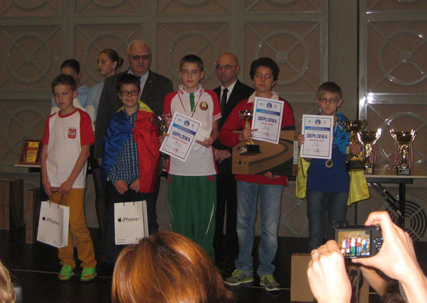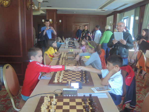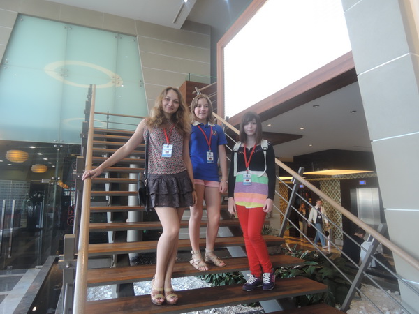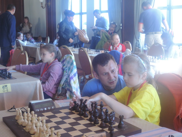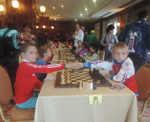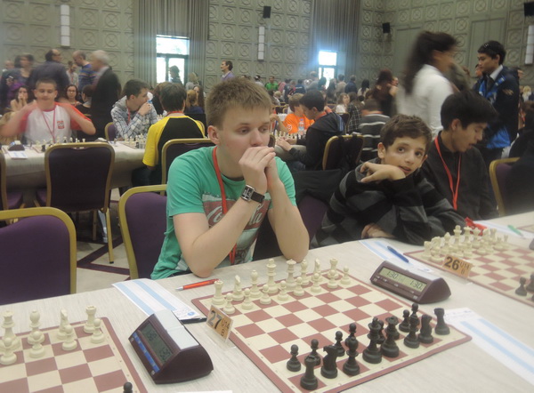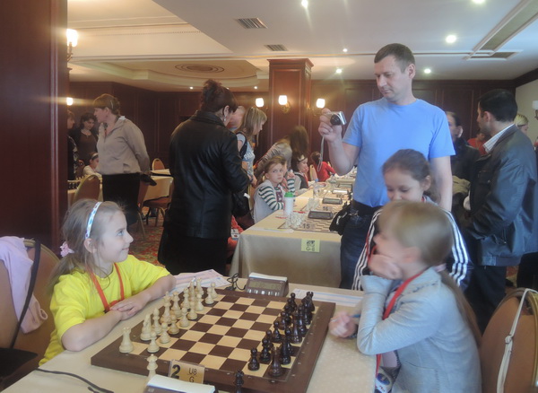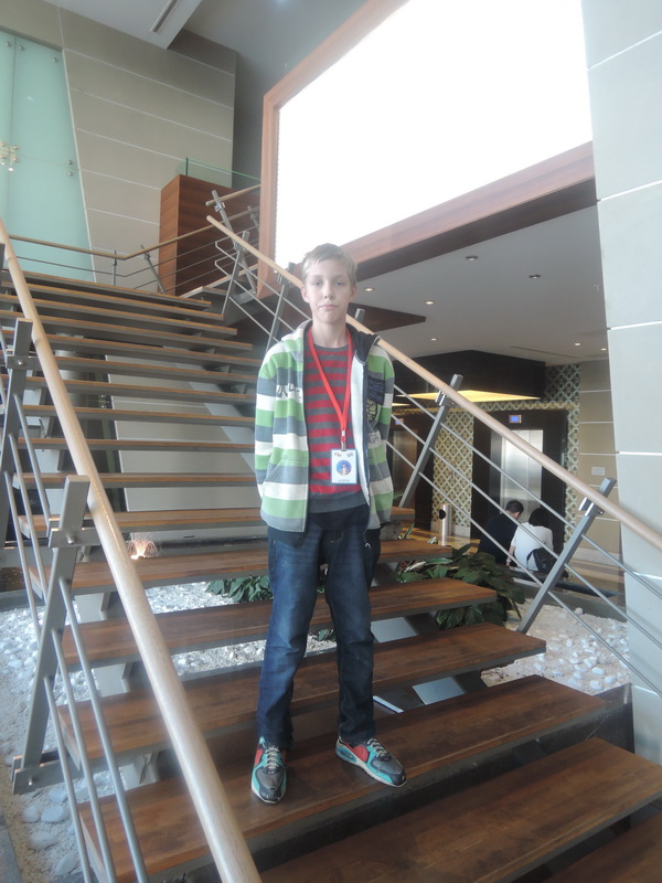 Итак, вереница детей, родителей и тренеров потянулась к месту игры. Поцеловав своих чад наудачу, родители плотным кольцом окружили игровой зал, c надеждой периодически поглядывая на самый верх крутейшей лестницы. Ограничение доступа в игровой зал до минимума как способ борьбы против читерства. Интересно, как предстоит дело с наличием «глушилок»? На турнире действует правило «15 minutes tolerance» (за опоздание на 15 мин. получишь «баранку»). Юношеские чемпионаты Европы и мира — всегда на редкость масштабные мероприятия. Рябит в глазах от невероятного количества детей, родителей и тренеров иже с ними. Пестрая сумятица языков — настоящее вавилонское столпотворение.
