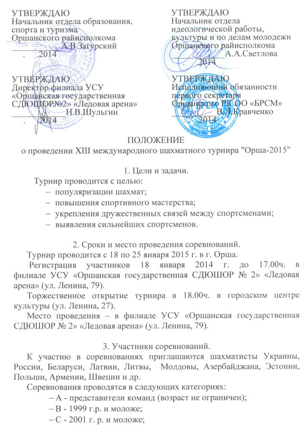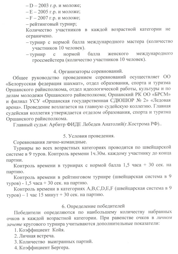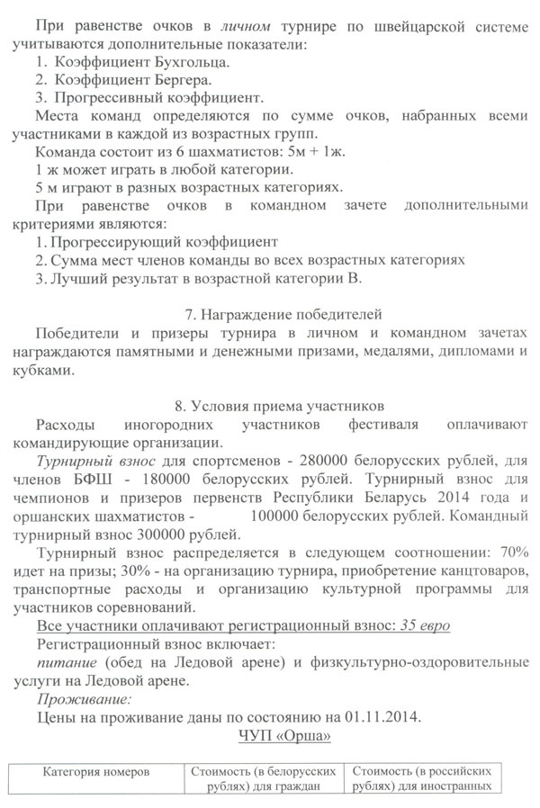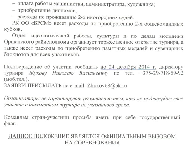 проведения ХIII международного турнира по шахматам