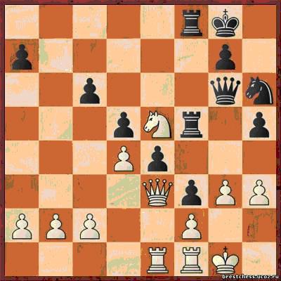 Кd419.c:d4 С:d4+ 20.Крh1 С:a1 21.Кa3 Сf6 22.Кc4 Сa6 23.Кg4 Сd4 24.Лf3 Лab8 25.Лg3Крh8 26.Сd3 С:c4 27.Ф:c4 Лb4 28.Фa6 Фb6 0-1